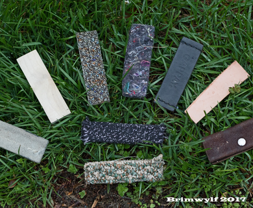 Articles for tracking generally include wood, leather, plastic, carpet. Schutzhund regulations specify specific sizes for trialling. These are 10cm (4 inches) long by 2-3cm (¾ inches to 1¼ inches) wide by 0.5-1cm (1/5 inches to 2/5 inches) thick. You can buy articles specifically made for the sport at various retailers including Gappay, but you can also make your own from offcuts and samples.